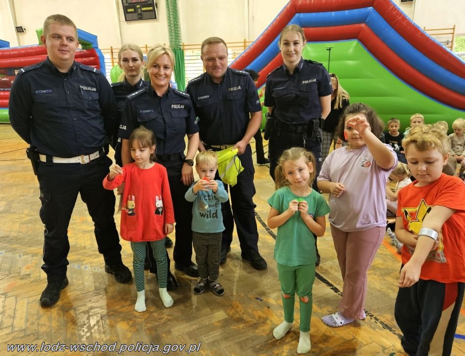 1 października 2025 roku policjanci z Wydziału Ruchu Drogowego oraz dzielnicowa z Komendy Powiatowej Policji powiatu Łódzkiego Wschodniego zagościli w przedszkolu w Gałkowie Dużym, w którym Starostwo Powiatowe w Łodzi umiliło najmłodszym ten dzień wystawionymi dmuchańcami. Policjanci, którzy zawitali do przedszkolaków poruszyli temat bezpieczeństwa w ruchu drogowym i ni tylko. Właściwe przechodzenie przez jezdnię, korzystanie z elementów odblaskowych ma uświadomić najmłodszym jak bardzo ważna jest nasza widoczność dla kierowców. Bez względu na to czy idziemy chodnikiem, poboczem czy przechodzimy przez oznakowane przejścia dla pieszych odblaski, które mamy na sobie dają sygnał kierowcy, że powinien zwolnić i baczniej obserwować otoczenie. Policjanci doskonale wiedzą, iż nauka bezpieczeństwa jest niezwykle ważna już od najmłodszych lat. Dzielnicowa omówiła z dziećmi jak zachowywać się w sytuacji kiedy zaczepia je obca osoba, bądź częstuje słodkościami.