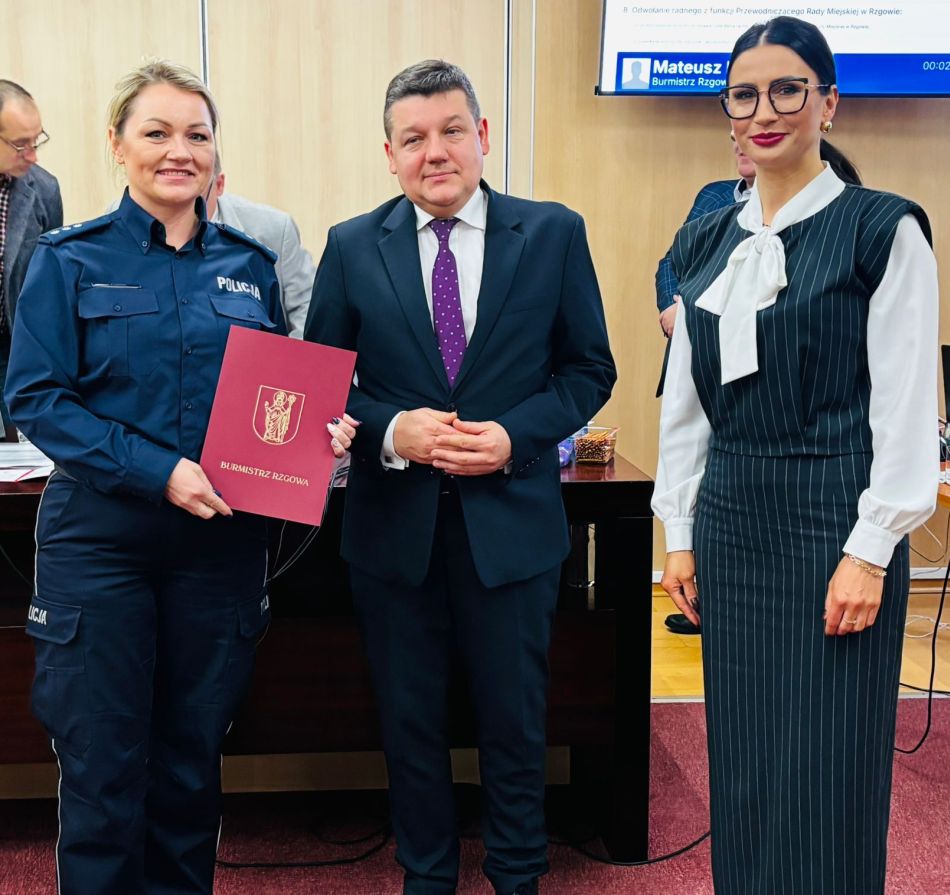 Podczas ostatniej sesji Rady Miejskiej w Rzgowie władze samorządowe wyraziły oficjalne podziękowania dla Komendant Komisariatu Policji w Rzgowie za jej dotychczasową służbę oraz zaangażowanie na rzecz bezpieczeństwa mieszkańców gminy Rzgów policjantów. Burmistrz Rzgowa wręczył kom. Urszuli Ptasznik list z podziękowaniami, wyrażając uznanie za profesjonalne pełnienie służby oraz za zaangażowanie wykraczające poza realizację ustawowych zadań Policji. Podkreślono także aktywną obecność Pani Komendant podczas ważnych uroczystości państwowych i wydarzeń odbywających się na terenie gminy.