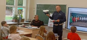 Koluszkowski policjant ruchu drogowego odwiedził dzieci ze Szkoły Podstawowej nr 2 w Koluszkach, aby przybliżyć im tematy związane z bezpieczeństwem. Mundurowy tłumaczył jak bezpiecznie należy poruszać się po drodze, dlaczego warto nosić elementy odblaskowe oraz jak ważne jest dbanie o własne bezpieczeństwo.