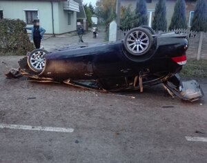 W dniu wczorajszym około 17:20 w Żakowicach na drodze wojewódzkiej W 716, doszło do groźnie wyglądającego wypadku samochodowego. Pojazdem, który dachował poruszały się dwie osoby. Kierowca BMW miał w organizmie prawie dwa promile alkoholu. (foto.)