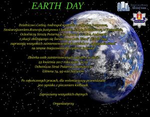 - Dzielnicowi zapraszają na ,,Earth Day” Czyste otoczenie, pozbawione śmieci i groźnych odpadów, mogących zagrażać nam lub naszym bliskim, daje poczucie bezpieczeństwa. Dlatego dzielnicowi gminy Andrespol wraz ze współorganizatorami zapraszają wszystkich chętnych do udziału w akcji ,,sprzątania ziemi" organizowanej w dniu 22 kwietnia br. z okazji ,,Dnia Ziemi". Szczegóły na plakacie zamieszczonym poniżej lub u dzielnicowych z Posterunku Policji w Andrespolu. W załączeniu link zawierający dane kontaktowe.
